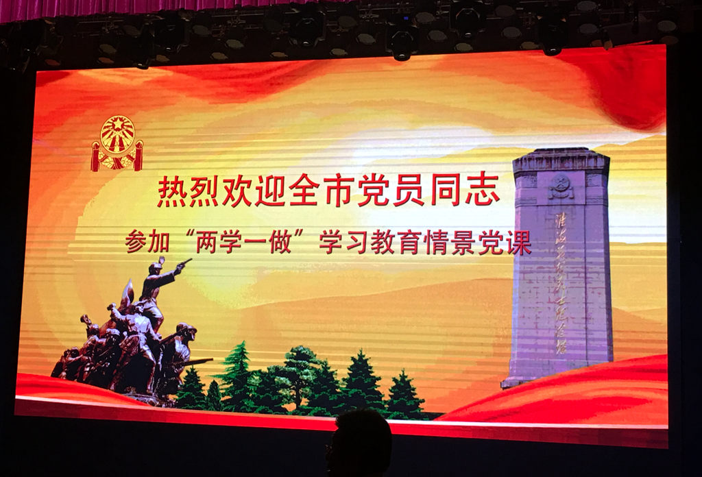 “一往无前、决战决胜”情景党课改变传统党课的固有模式,以宣传“淮海战役精神”为主题,通过乐、舞、颂、剧等多种艺术形式,综合运用声、光、电等现代技术手段,讲述了陈洁、李凤兰、孔金胜以及幸存将士、拥军百姓等人的故事,生动再现淮海战役的伟大场景和共产党员的英勇事迹。一首首激昂的歌曲,一个个细腻动人的故事,潜移默化地将党员带入特定情景中,使党员们深刻感受到战役的残酷与艰辛,使大家在思想上产生了共鸣。党课进行时,党员们的掌声一次次响起,泪光一次次闪烁,大家都被这种新颖的党课形式深深吸引。
