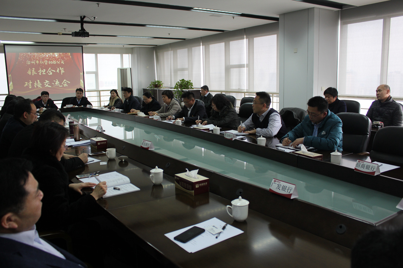 2月9日下午,徐州市融资担保公司召集工商银行、农业银行、中国银行、建设银行等10家银行机构分管信贷的相关领导,召开“银担合作对接交流会”。国盛公司总经理李中亚、徐州市融资担保公司总经理曹义姗参会。