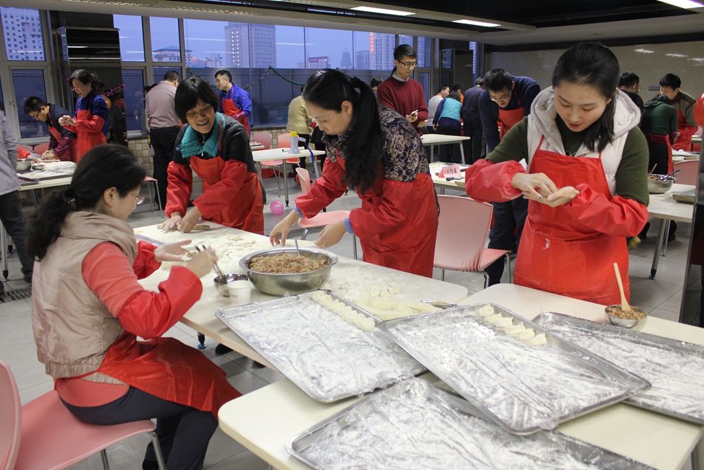 本次活动包括背对背运气球、你比我猜、掼蛋、包饺子四个项目。在背对背运气球比赛中,各小组配合默契,小心翼翼地背靠背夹着气球,争先恐后地向终点跑去;你比我猜考验的是团队的协作与反应能力,一人比划一人猜题,比赛紧张激烈,不仅有90秒猜对13道题的超级心有灵犀、还有那些错猜的滑稽表演,引起了观众的阵阵笑声;掼蛋比赛中,选手们沉着冷静,气氛紧张而愉快,体现了和谐快乐的比赛精神;最后一个环节是包饺子,大家更是热情满满,各小组分工有序,揉面的揉面,擀皮的擀皮……