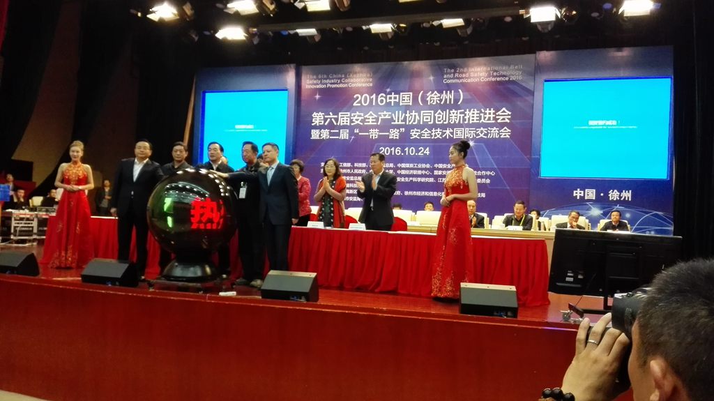 10月24日,2016中国安全科技产业协同创新推进会暨第二届“一带一路”安全产业发展国际交流会在徐举行。国务院安委会专家委员会副主任郭炎炎、国家安监总局总工程师兼规划科技司司长吴鑫,徐州市市长周铁根、副市长李燕,以及中联部、工信部、科技部、安监总局、煤炭工业协会有关司局领导,国内安全产业有关企业和高校、研究院所负责人,“一带一路”沿线部分国家官员和专家等350多名嘉宾参加活动。国盛公司董事长赵丽出席会议并参加签约仪式。