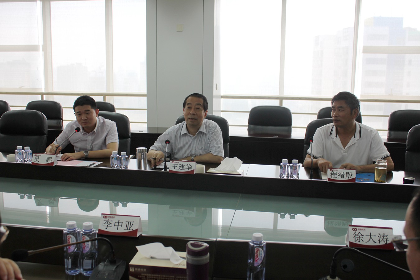 8月23日上午,济宁市兖州区惠民城建投资有限公司董事长王建华、副总经理程绪殿、董事会秘书吴鹏一行莅临国盛公司,针对地方金融服务平台建设进行交流座谈。国盛公司总经理李中亚主持会议,投融资管理部、金融拓展部等相关部门负责人参加座谈会。