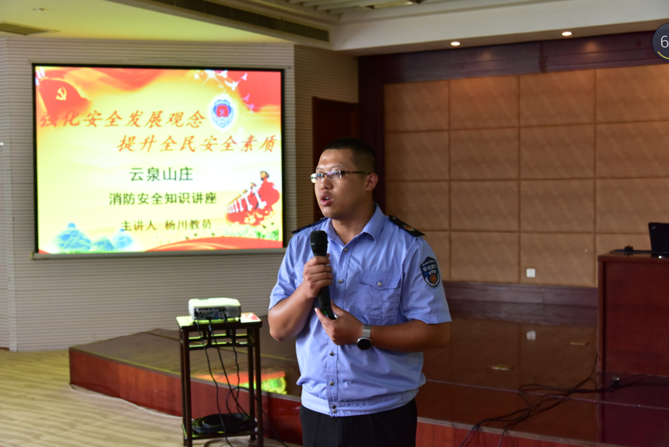整场培训内容深入浅出,通俗易懂,使广大员工深刻认识到单位、家庭的防火责任重于泰山,并使大家吸收掌握了消防安全技能的基本要领,为云泉山庄消防安全稳定打下了基础。