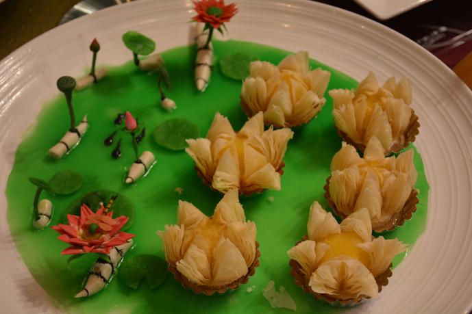 本次比赛包含切配、凉菜、热菜、面点、摆台五个项目,全面考察了员工的各项技能。切配环节主要考验基本刀工;凉菜、热菜环节指定主材,鼓励员工开拓思维、敢于创新;面点环节比拼的是创意与技艺的结合;摆台环节则更注重规范和标准。较往年相比,今年技能比武大赛的参与度、主动性与创新性均有大幅提升:交叉岗位选手明显增多,员工在扎实自身基本功的基础上,开始注重多元化发展;新进员工表现踊跃,日常培训与比赛模式激励了新员工迅速成长;创意与文化有机结合,特别是面点作品“云龙湖畔”大气且富有内涵,给现场观众留下了深刻印象。