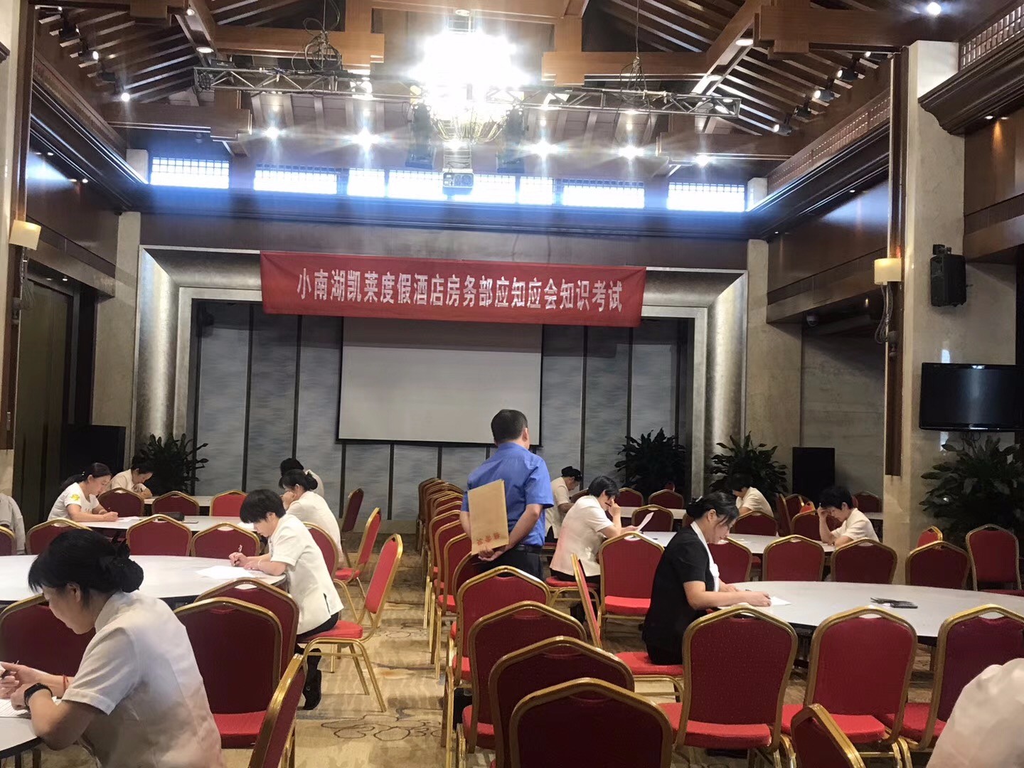 为进一步深入开展“岗位练兵、技能比武、知识更新”系列活动,强化员工服务意识,深化学习型组织建设,近日,国盛酒店组织客房部员工进行了应知应会知识考试。